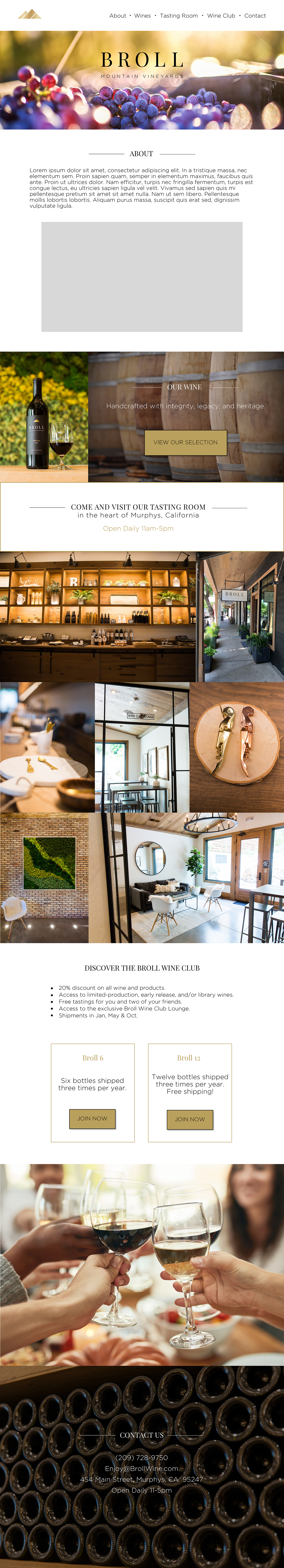 Broll Mountain Vineyards had been looking to redesign their outdated website for years. With the remodel of their wine store in Murphys, CA, they also needed a fresh new way to showcase their strong brand image online.